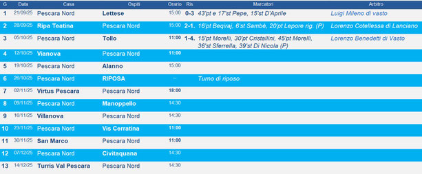 Calendario andata PESCARA NORD