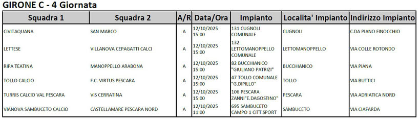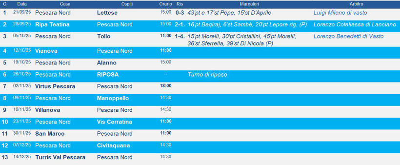 Domenica 12 ottobre alle ore 11:00 trasferta in casa del Vianova, formazione insieme alla Pescara Nord, ancora a zero punti ma con una gara in meno ed una migliore differenza reti.