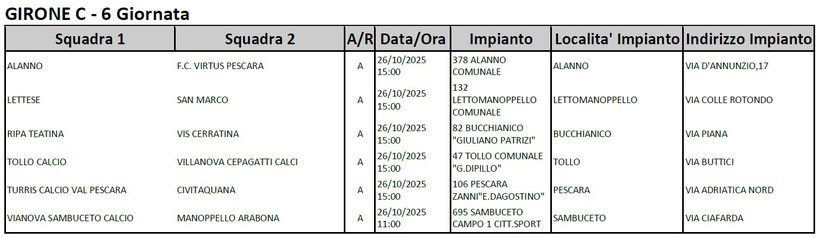 Calendario 1a CATEGORIA Girone C - 2025/26