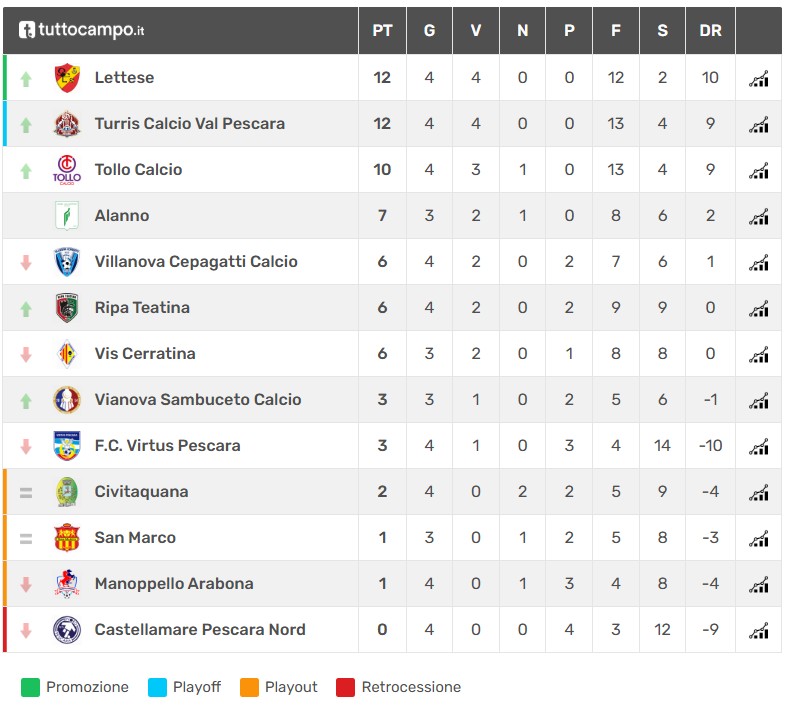 Dopo quattro giornate continua il duello in testa tra Lettese e Turris.